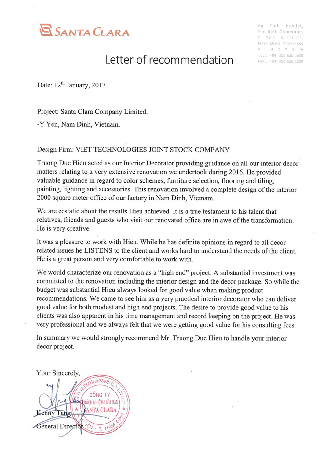 Năm 2018 VietDECOR thiết kế và thi công hai văn phòng nhà máy tại khu Công Nghiệp Nam Tài, Phú Thái - Hải Dương, trong đó có văn phòng Kintex Elastic Ltd của Hong Kong được khách hàng đánh giá tốt, cụ thể sau 1 dự án VietDECOR thực hiện, khách hàng luôn gửi lời cảm ơn tới đội ngũ VietDECOR đã tham gia thiết kế, thi công cùng nhóm hỗ trợ giúp dự án được hoàn thành đáp ứng được các yêu cầu cũng như